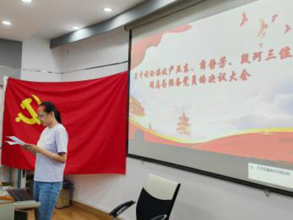 按组织程序,会议表决通过尹亚东、薛静芳、段珂三位同志入党。讨论通过预备期满的李玲玉、王艳融、董文娟三位同志转为正式党员。