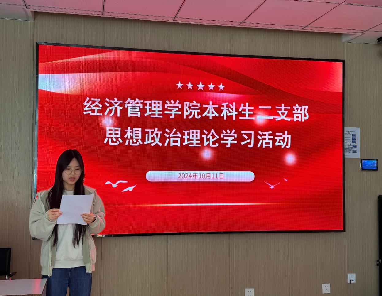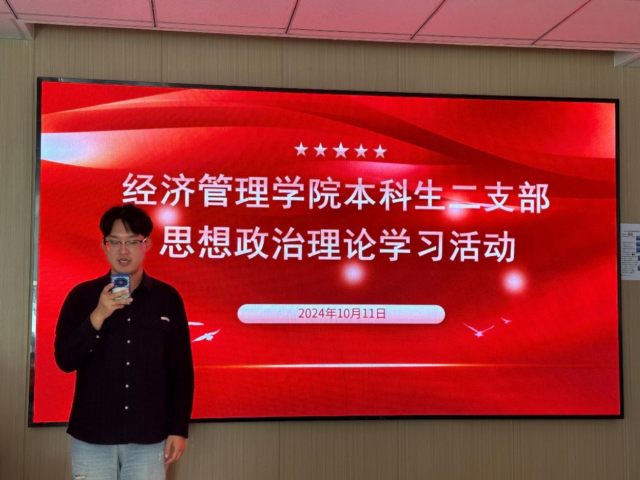 为进一步学习贯彻习近平新时代中国特色社会主义思想,提升支部党员政治素质和党性修养,2024年10月11日下午,新葡萄官网amg本科生二支部在知行楼(经管楼)205教室开展了思想政治理论学习活动。万耀芳、康书硕、王泽旭三位同志分别围绕不同主题带领支部党员展开学习。