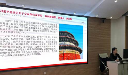 何艳娇同志就党的二十届三中全会通过的《中共中央关于进一步全面深化改革、推进中国式现代化的决定》中提到的习近平总书记关于全面深化改革的一系列新思想、新观点、新论断和中央银行制度两个方面进行了分享,并让党员同志观看有关中央银行制度的视频。陈婷婷同志就党的二十届三中全会通过的《中共中央关于进一步全面深化改革、推进中国式现代化的决定》中提到的“三个更加注重”、现代环境治理体系的健全以及有关现代环境治理体系学术说明的三个方面进行了分享。
