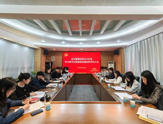 2024年12月19日下午,新葡萄官网amg党委在知行楼(经管楼)115会议室召开2024年度党支部书记抓基层党建工作述职评议会议,会议由学院党委书记李宏宇主持,学院党委副书记闫琴、各党支部书记、支部委员、部分党员代表共30余人参加会议。