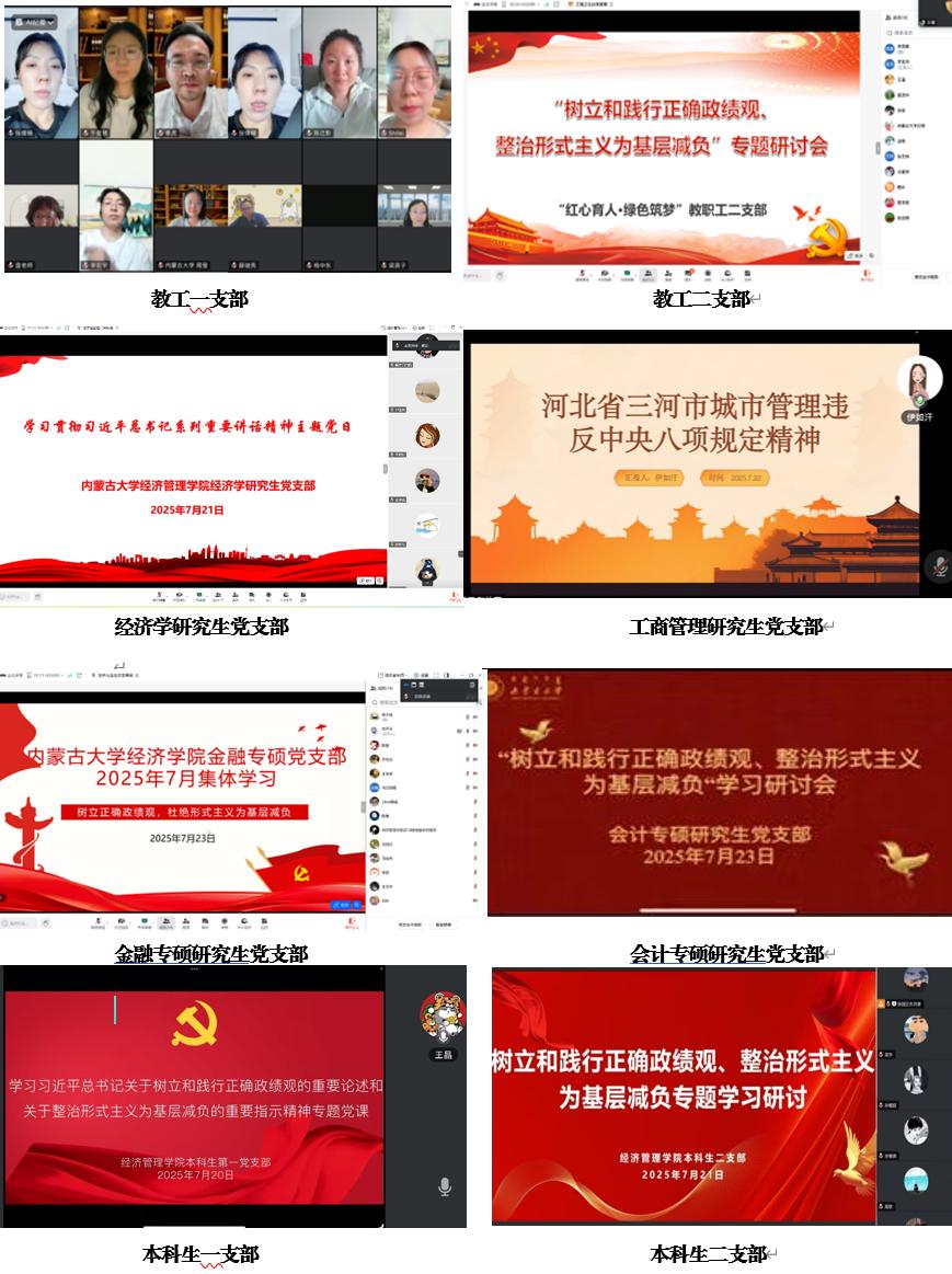 2025年7月20日-24日,新葡萄官网amg党委组织各党支部开展了以树立和践行正确政绩观,整治形式主义为基层减负为主题的线上专题学习研讨,各支部全体党员参加了学习研讨会。会议由各党支部书记主持。