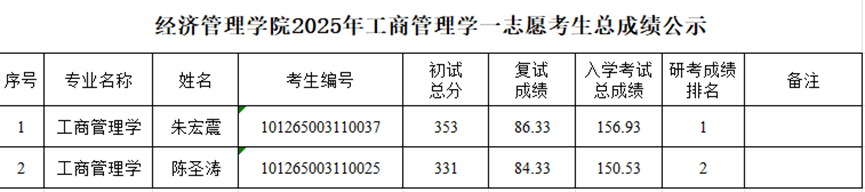 新葡萄官网amg2025年工商管理学一志愿考生总成绩公示