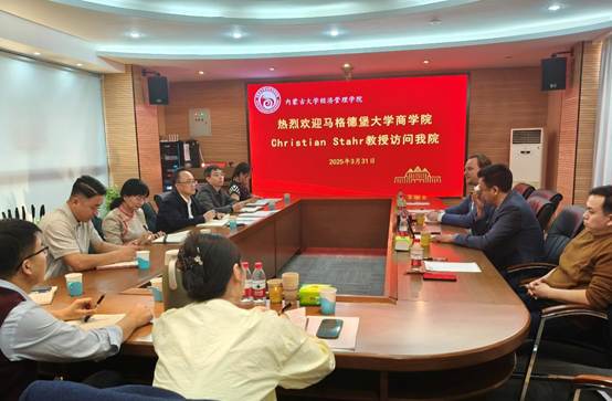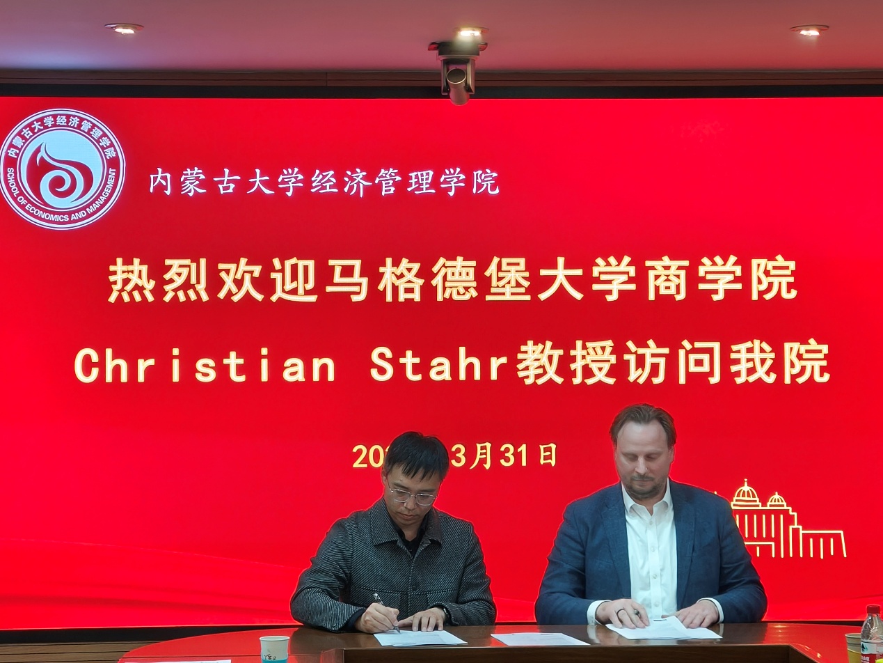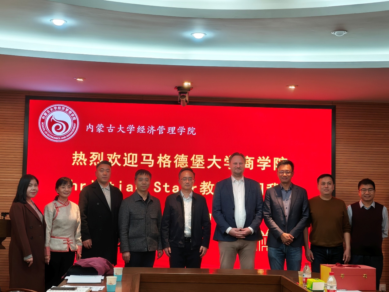 为推进新葡萄官网与马格德堡大学的合作,2025年3月31日,德国马格德堡大学商学院Christian Stahr教授来我院访问并与我院签订联合培养合作协议。学校国际合作与交流处处长段满福、我院副院长周瑜、蒙古学学院、民族学与社会学学院、蒙古历史学系负责人及上述部门相关工作人员参加了座谈。座谈会由段满福主持。