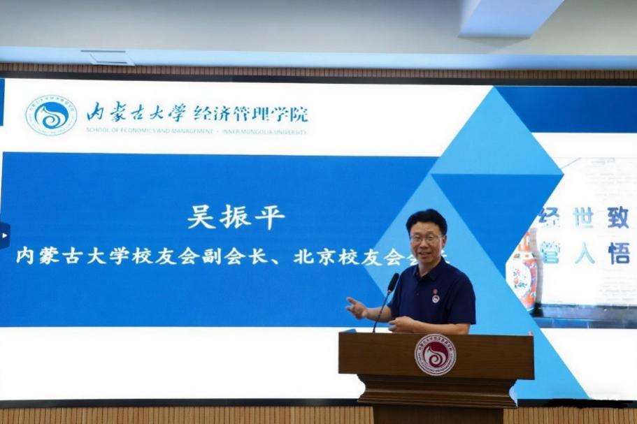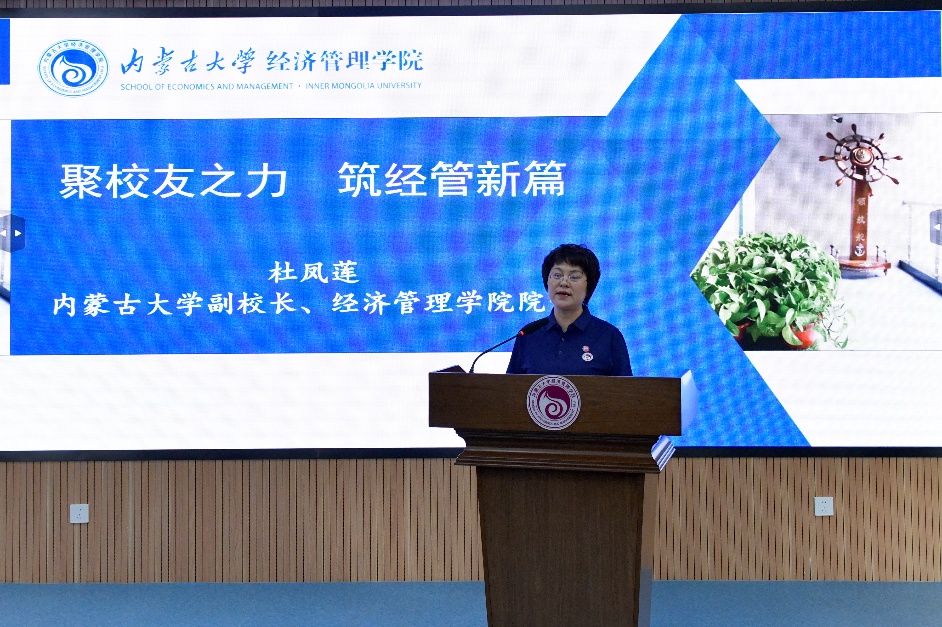 学院1990级校友、北京内蒙古商会会长、君诚实业集团董事长郭建君代表广大校友致辞,表达了对母校、对学院的深厚情谊,并表示将为学院的事业发展积极贡献校友力量。
