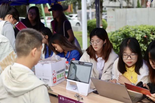 忙碌的穿梭于各个迎新点之间,热情周到的为新生及家长提供指路、引导、搬运行李等的服务。