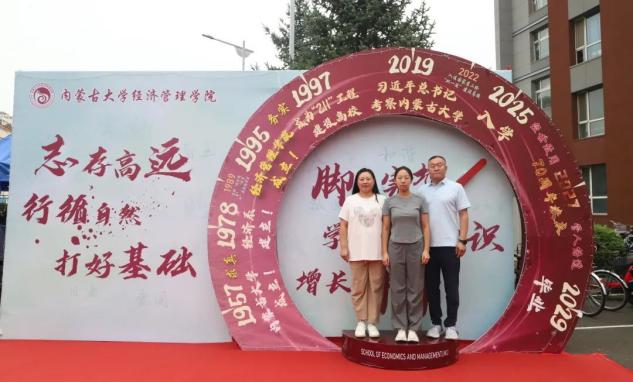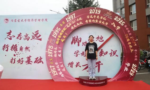 报到现场的打卡板上,习近平总书记对内大学子的殷切嘱托在阳光的照耀下熠熠生辉,字字句句都传递着温暖与力量;“日月争辉”时钟展板,是新生们的热门打卡点,新生及家长纷纷在此处留下进入大学的第一张照片,定格每一张青春洋溢的面孔、记录每一个美好灿烂的微笑。