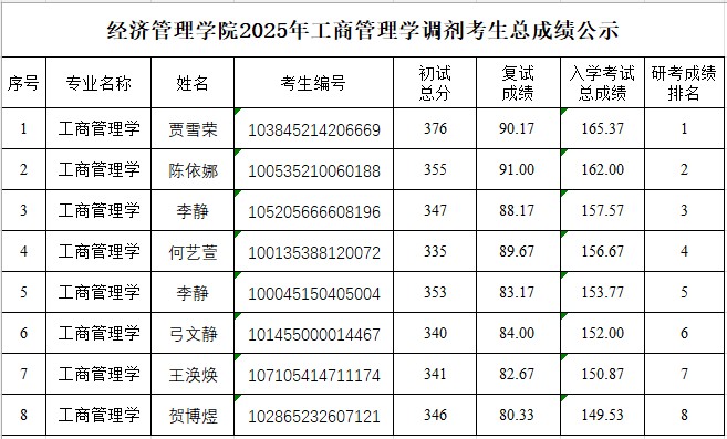 新葡萄官网amg2025年工商管理学调剂考生总成绩公示(二)