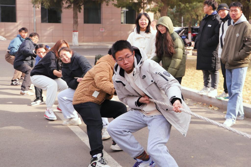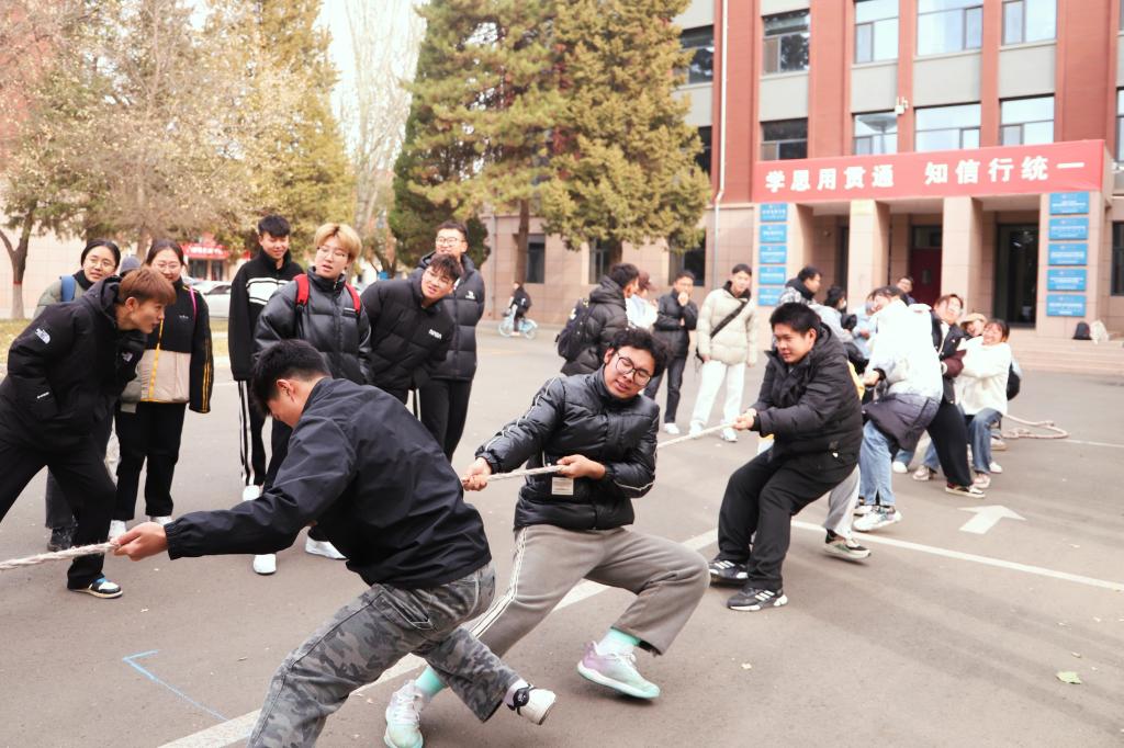 一根绳,凝聚青春力量;一股劲,激扬斗志豪情。参赛队员们紧握长绳,压低重心,铆足干劲,男生们双脚蹬地,重心后移,女生们巾帼不让须眉。大家在你争我夺中收获乐趣,于拉扯反超中增进友谊。赛场外的同学们紧盯那一抹左右移动的“红”,呐喊声、助威声此起彼伏,比赛精彩纷呈。