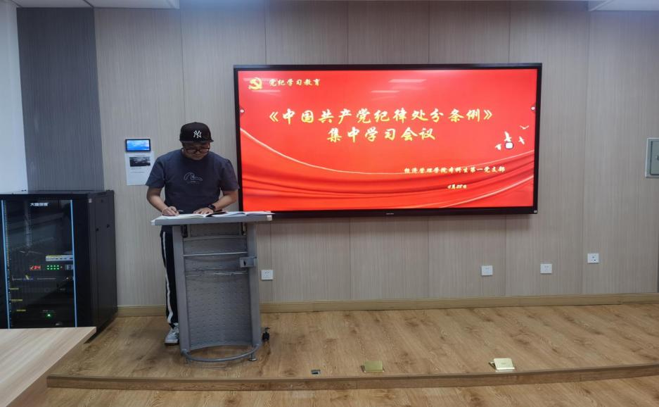 为进一步强化纪律意识、加强自我约束、提高免疫能力、增强政治定力、纪律定力、道德定力、抵腐定力,新葡萄官网amg本科生第一党支部于4月28日19:00,在知行楼(经管楼)205教室,组织全体党员开展党纪学习教育集中学习活动。