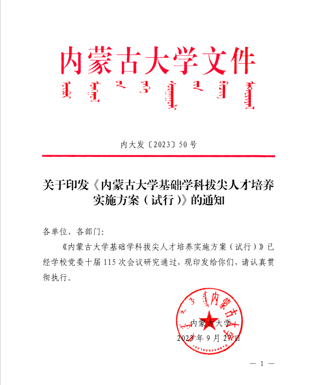 关于印发《新葡萄官网amg基础学科拔尖人才培养实施方案(试行)》的通知