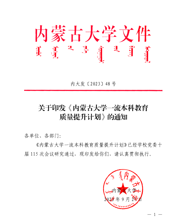 关于印发《新葡萄官网amg一流本科教育质量提升计划》的通知
