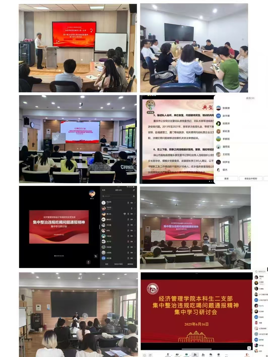 2025年6月16日,新葡萄官网amg党委组织各党支部开展了集中整治违规吃喝专题学习研讨,各支部全体党员参加了学习研讨会。会议由各党支部书记主持。