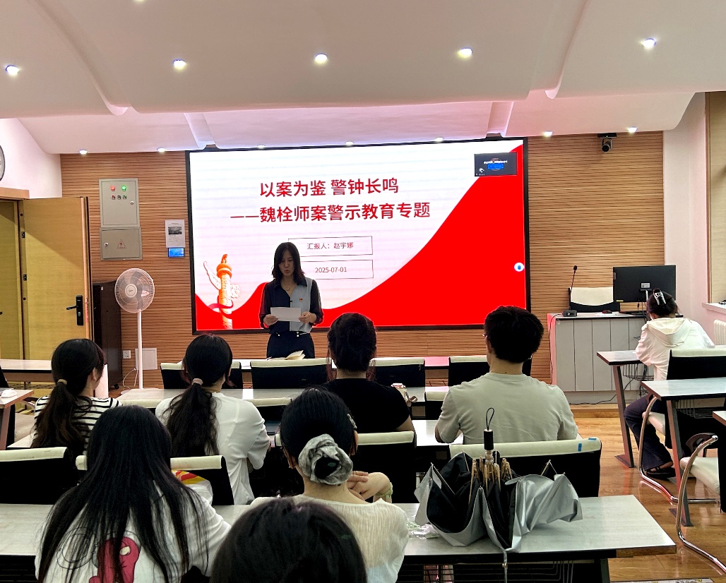 为深入推进党风廉政建设,筑牢党员纪律防线,2025年7月1日晚,新葡萄官网amg工商管理学研究生党支部在知行楼208教室开展专题警示教育,以典型案例为鉴,引导全体党员知敬畏、存戒惧、守底线。支部书记赵宇娜主持会议。