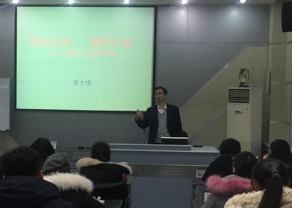 学院党总支书记张士伟分别主讲了党史和十八届六中全会精神,他为同学们很清晰地梳理出了中国共产党历史的整个发展脉络,帮助同学们客观理性认识党的历史,坚定自己的政治选择。在讲解十八届六中全会精神时,他要求追求入党的同学一定要关心时事,随时了解学习党的最新理论、政策,并重点讲解了十八届六中全会审议通过的《准则》和《条例》,要求增强政治意识、大局意识、核心意识、看齐意识。
