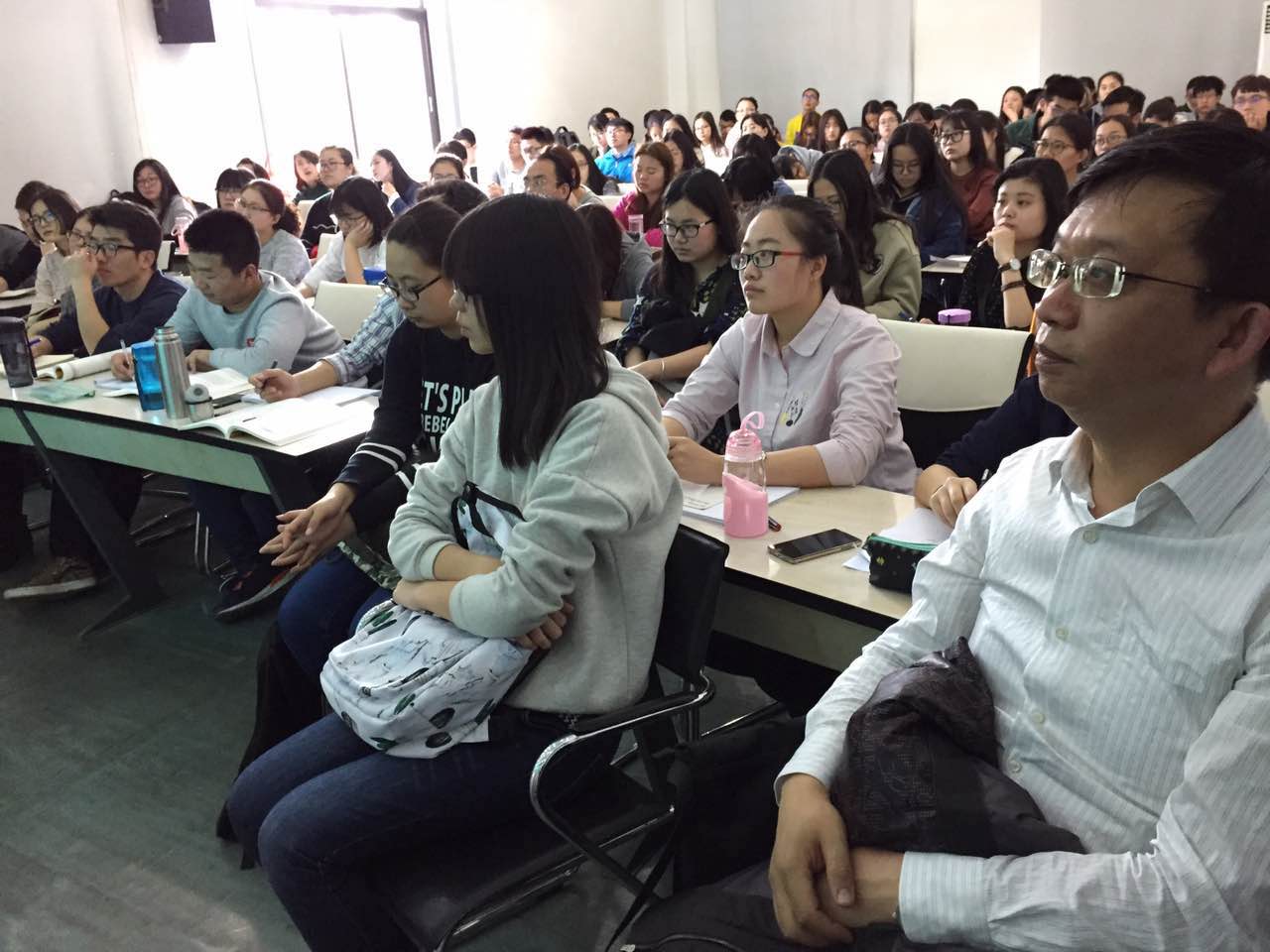 2017年3月28日下午,在经管楼208教室,天风证券自营投资总监程刚先生应邀为我院师生作了“衍生品交易与套利策略”讲座,讲座由金融系主任梁斌博士主持。我院数名老师和相关专业的研究生、本科生聆听了讲座,过道都摆满了椅子,还有同学站着听完了4个多小时的讲座。