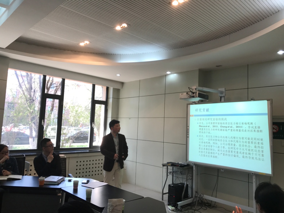 在纪念新葡萄官网建校60周年活动中,我院决定主办“礼敬校庆——经管院系列学术讲座”。首场学术讲座于2017年4月26日举行,金融系陈胜蓝教授担任主讲,金融系主任梁斌博士、青年教师宋云玲博士、许红梅博士和相关专业的研究生参加了讨论。