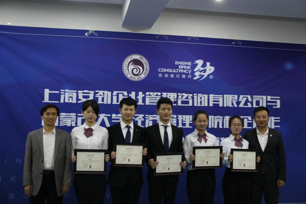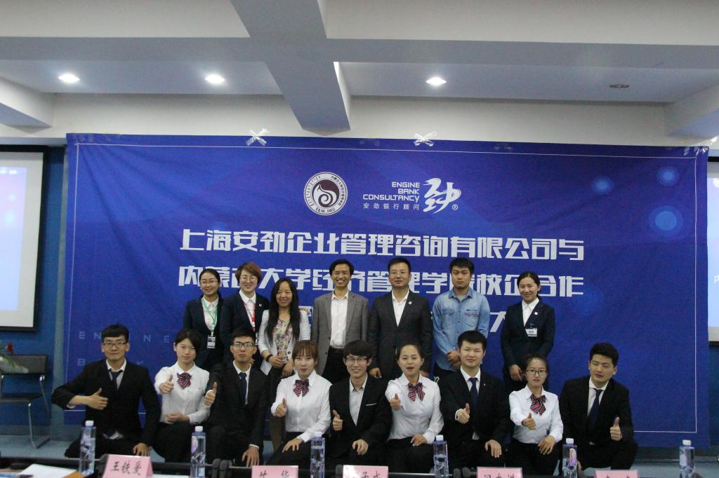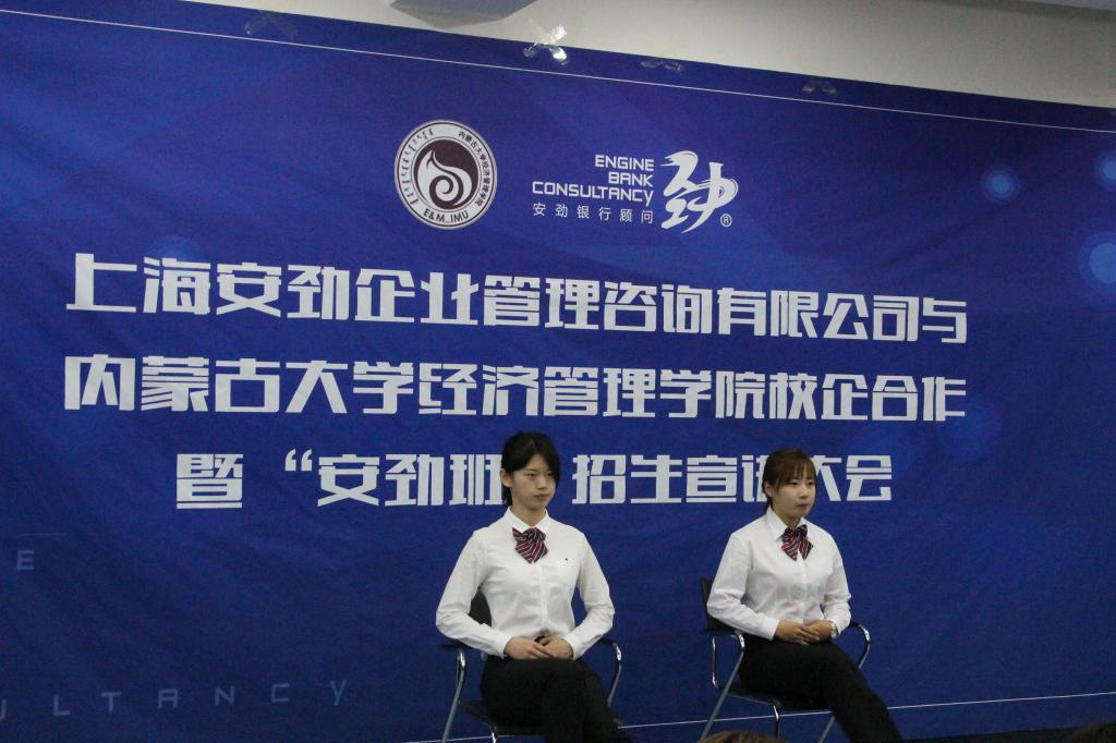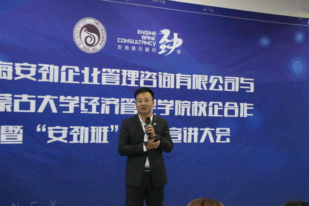 2017年5月18日晚7:00,在新葡萄官网amg经管楼116报告厅,新葡萄官网amg与上海安劲企业管理咨询公司联合举办了首期“安劲班”总结表彰暨第二期“安劲班”招生宣讲大会。出席本次大会的领导及嘉宾有,新葡萄官网amg党总支书记张士伟、仿真实验中心主任艾华、团总支辅导员闫东祺,安劲公司总经理王子成、人力资源经理兼安劲班负责人张丽清、项目经理王铁爱、项目经理青青。内蒙古农业大学第三期“安劲班”部分学员应邀参加会议。张士伟主持了大会。