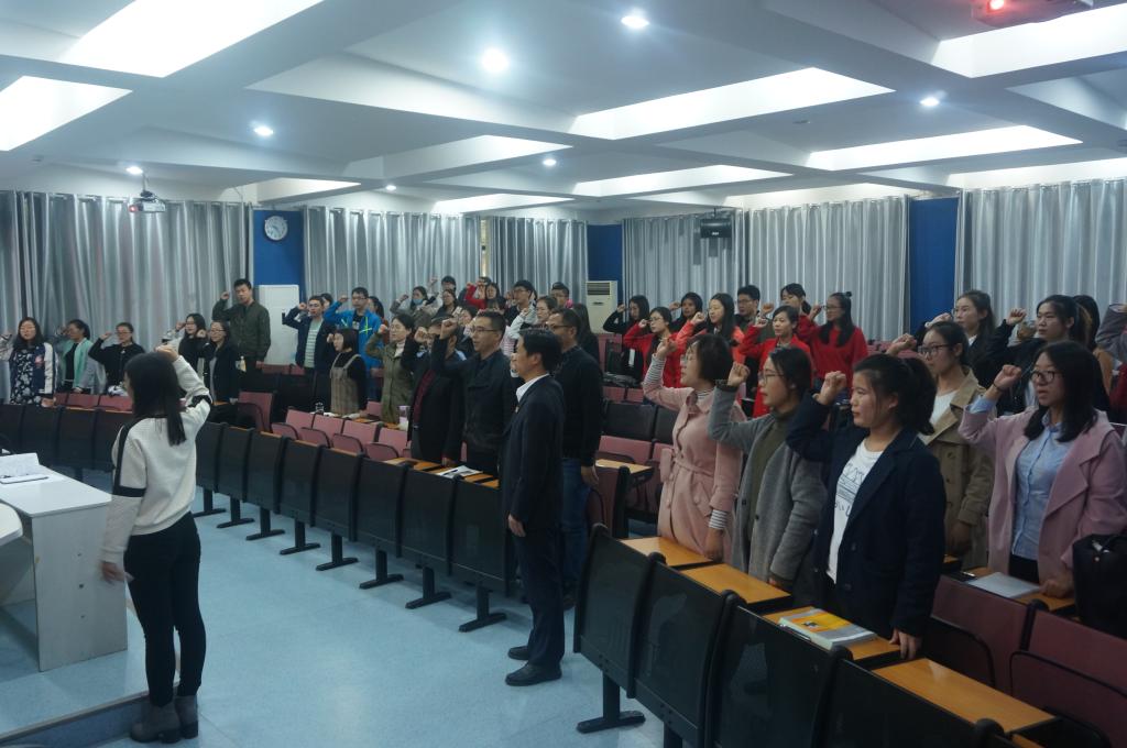 为庆祝党的十九大胜利召开,新葡萄官网amg党总支组织开展了“不忘初心,牢记使命”主题党日系列活动,在邀请专家举办学习习近平总书记“7.26”讲话精神专题讲座、组织党员观看十九大开幕会盛况之后,2017年10月18日下午,举行新党员宣誓仪式。本次活动由学院党总支书记张士伟主持,学院各支部负责人及本科生、研究生新入党党员共50余人参加会议。