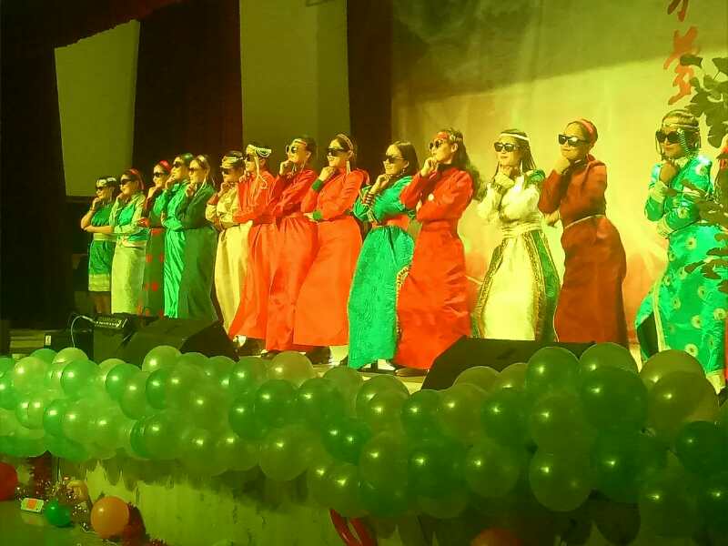 在精彩的互动环节过后,第二篇章拉开帷幕,首先登场的是吉他社,他们为观众热情演绎了歌曲《彩虹雪碧》,从他们的歌声里,我们感受到了青春的力量与激情。接着,便是由高靖德等二位同学带来的相声《海外探亲》。就在大家被相声的魅力而征服的时候,蒙古族姑娘们为大家带来了歌曲《MINI EGG》和创意无限的服装秀。她们用蒙古族的服饰演绎了富有时尚气息的服装秀,观众们被她们新奇的创意而深深折服。接下来,是由魏晶晶等同学带来的弹唱《锦鲤抄》,古朴素雅古筝伴奏将观众们带入中国风的世界。