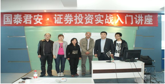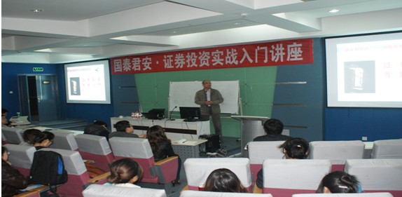 2012年4月12日,由国泰君安证券内蒙古分公司主办,新葡萄官网amg综合实验中心承办的国泰君安•证券投资实战入门讲座在经管院116报告厅拉开帷幕。国泰君安证券内蒙古分公司李刚经理、分析师哈索库以及新葡萄官网amg部分教师与2011级、2010级金融班学生、参赛选手近120人参加讲座。