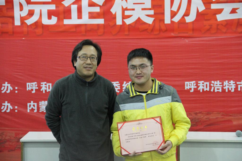 张启锋老师为团体代表吕国云同学颁奖 张士伟书记为杨策同学颁奖