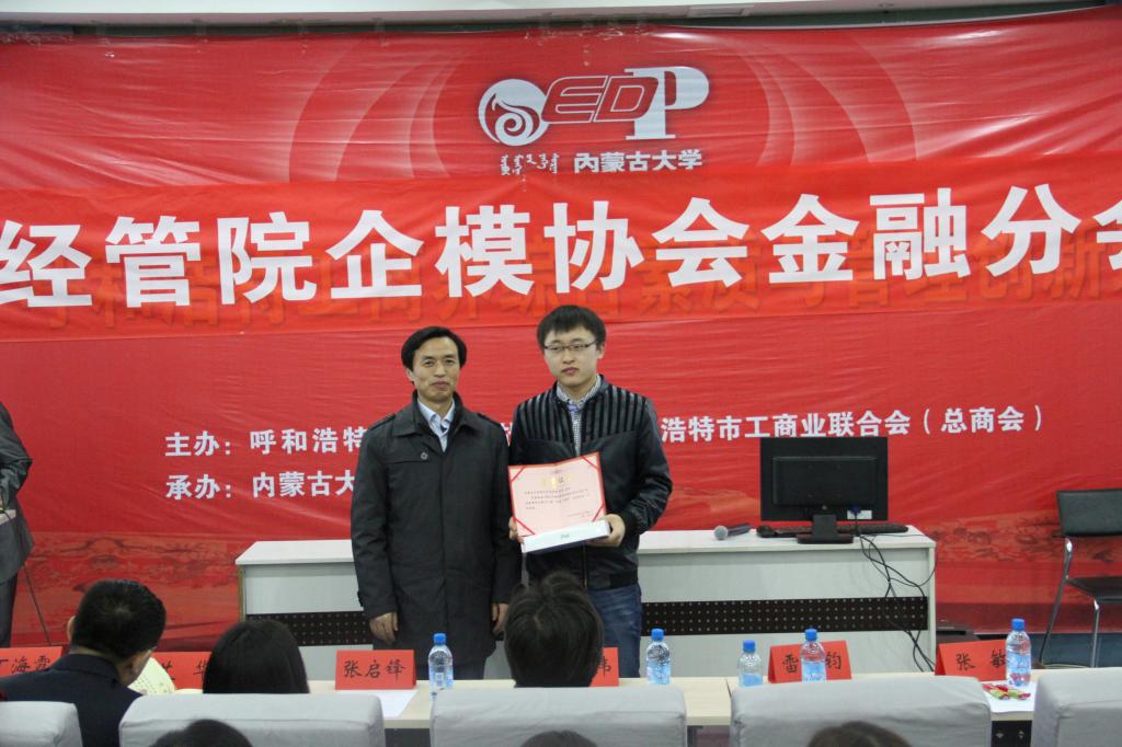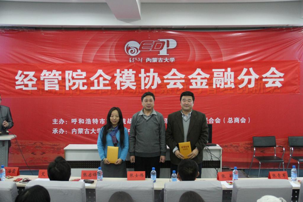 张士伟书记致开幕词并宣布经管院企模协会金融分会成立 张青军老师为张彻老师、艾华老师颁奖