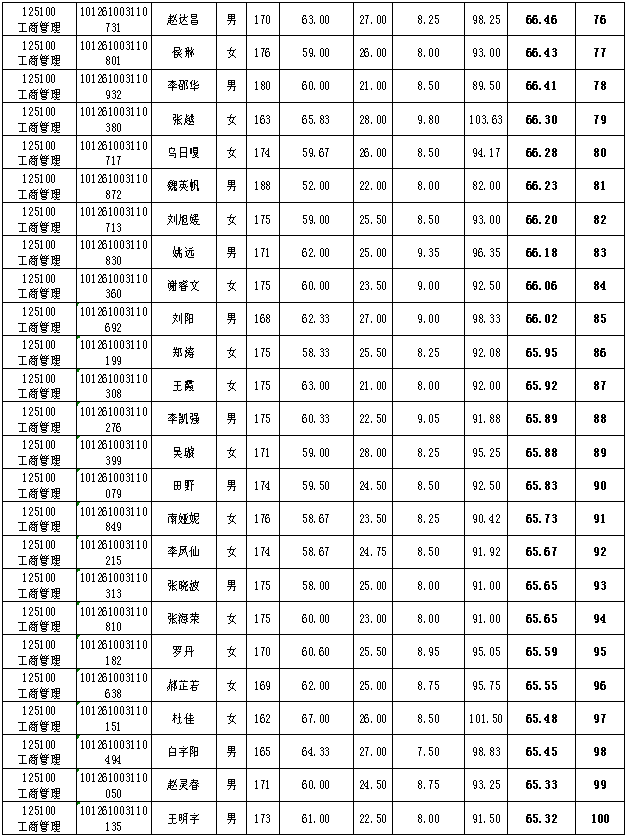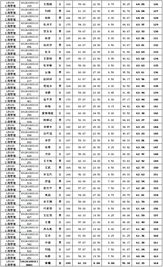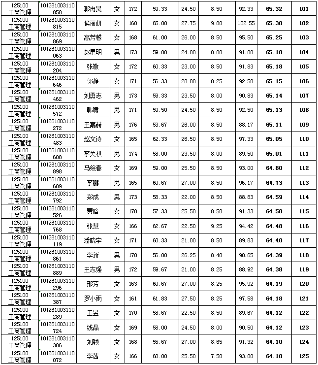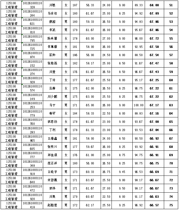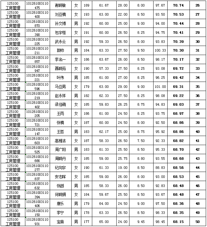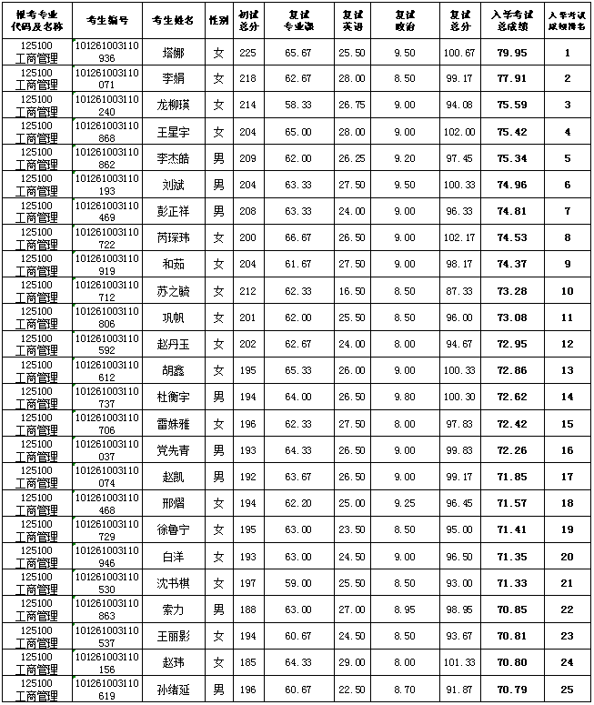 工商管理硕士(MBA)成绩公示