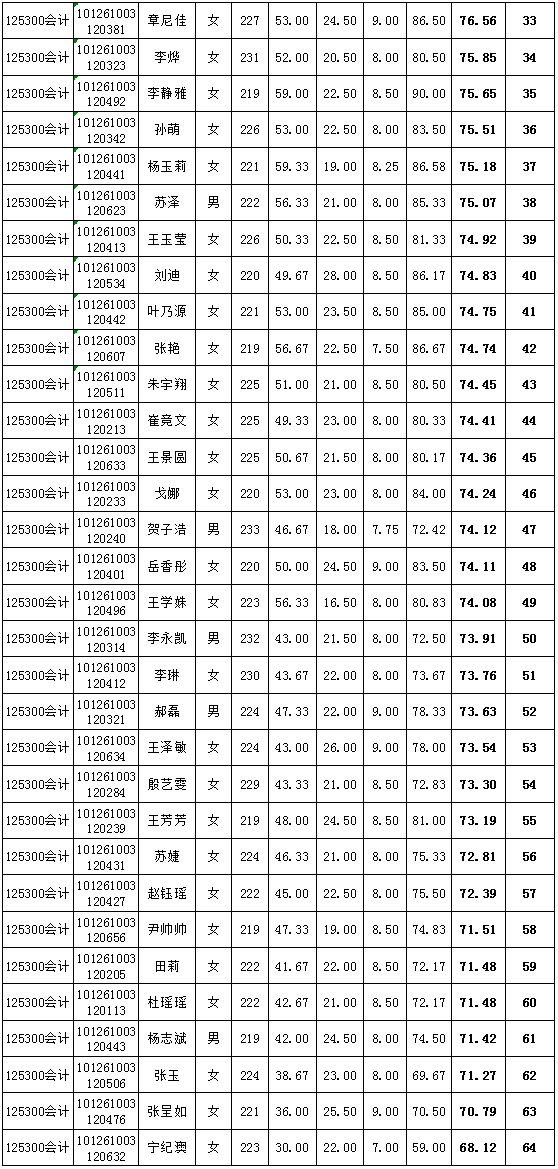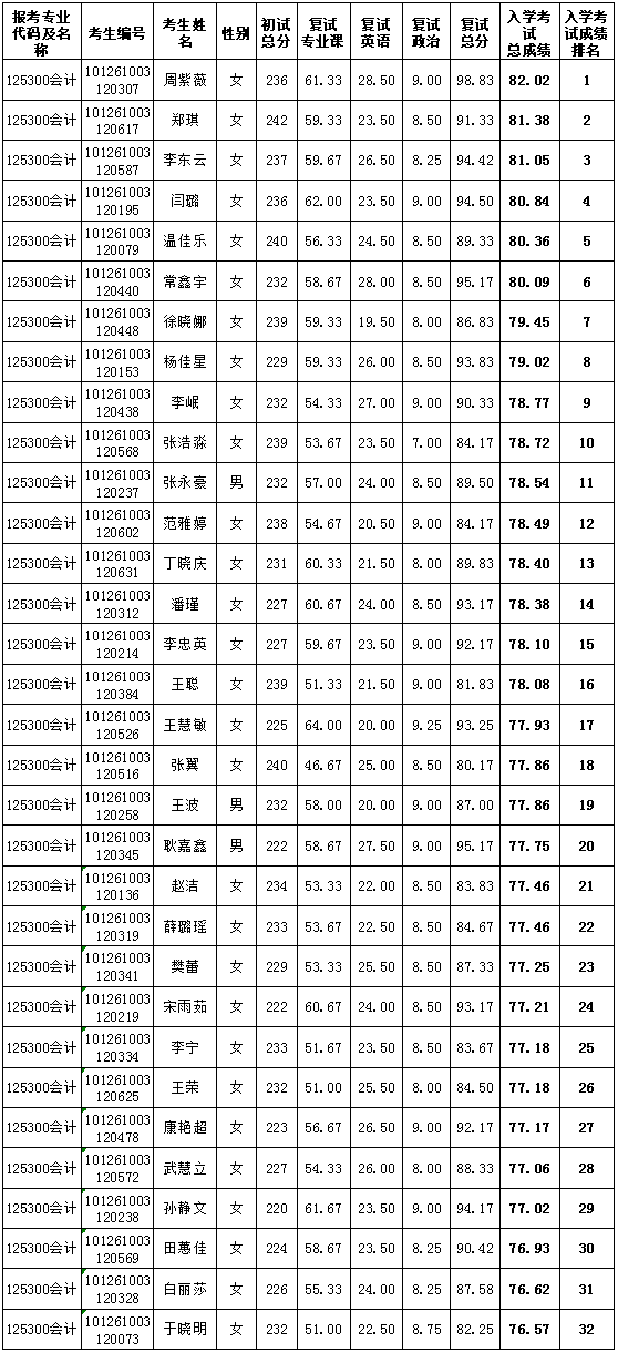 会计硕士(MPAcc)成绩公示