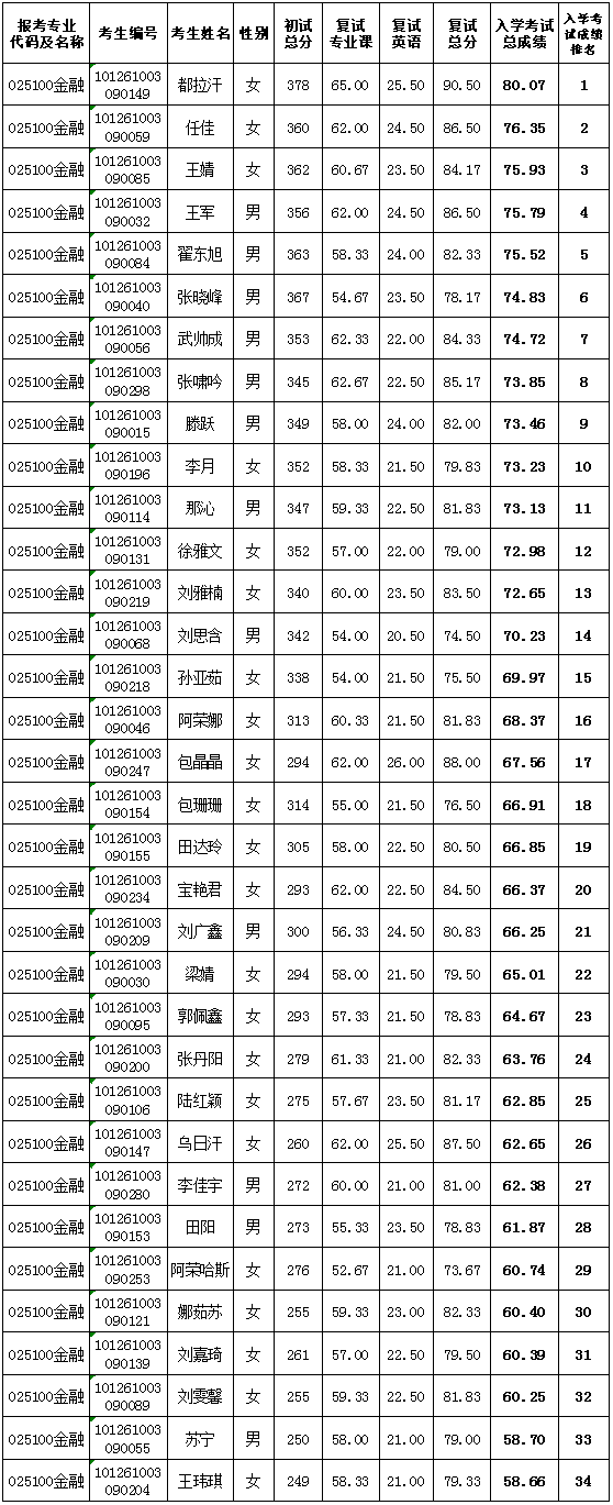 金融硕士(MF)成绩公示