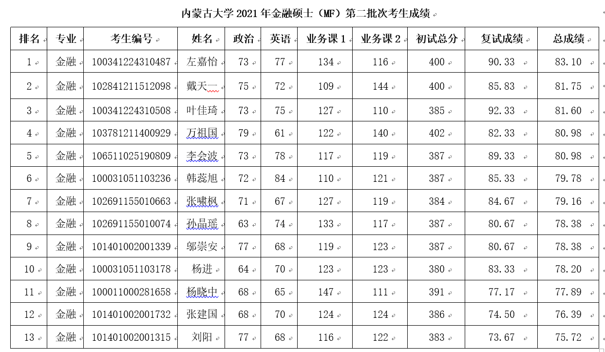 新葡萄官网amg2021年第二批次金融硕士(MF)研究生入学考试总成绩公示