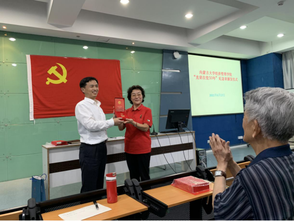 今年是中国共产党成立100周年,党中央首次颁发"光荣在党50年"纪念章,表达对老党员的关怀和褒扬。按照上级党组织要求,我院于2021年6月17日下午举行了“光荣在党50年”纪念章颁发仪式。学院党委委员、各支部负责人及党员代表参加了会议,学院党委书记张士伟主持会议。