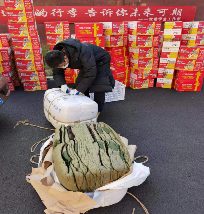 倡议发出后,校友积极主动联络学院,询问当前状况并提出各种捐赠方案及举措。几个小时后,带着校友爱心的第一批牛奶、面包、火腿肠等物资于10月9日当晚运抵校园,方便面、防寒大衣以及消毒液、口罩等第二批物资于10月10日下午送达。