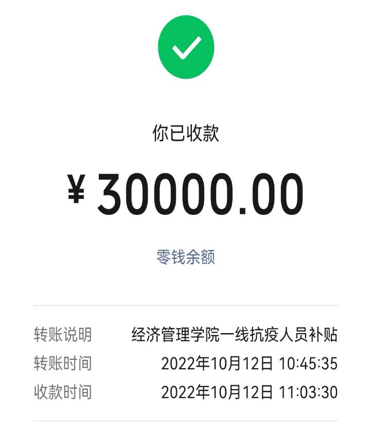 图2 青海省内蒙古商会为经管院一线抗疫人员捐赠专项补贴