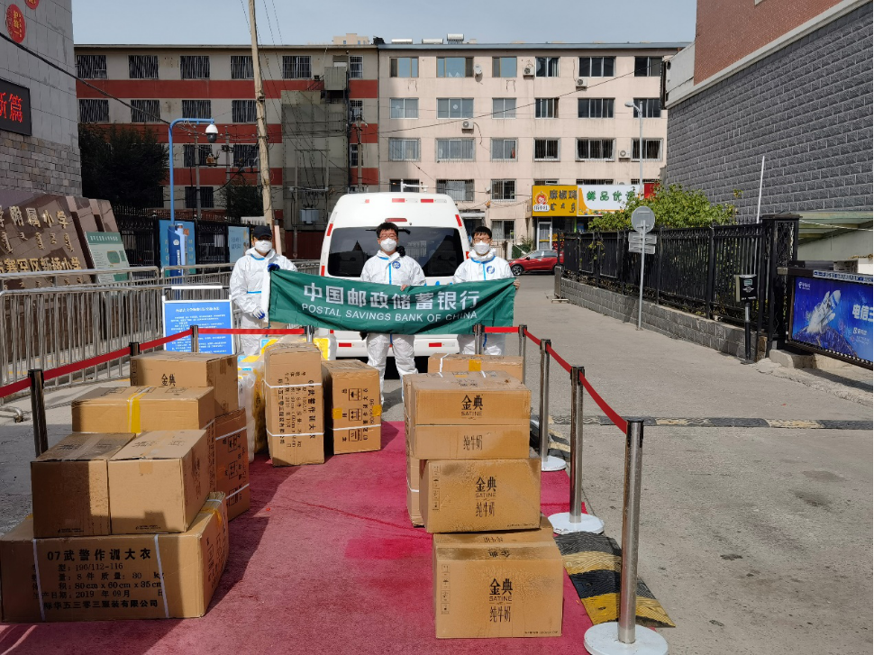 图3 邮储银行捐赠的大衣、牛奶、日常必需品等发达