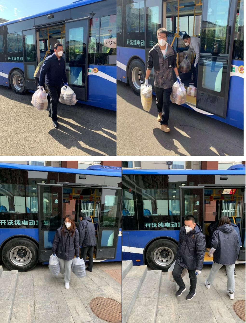 宿舍封闭管理后,需要把餐食配送到宿舍楼门口,再由楼内志愿者取餐、分发至各宿舍。10月9日以来,王锋正书记、闫东祺书记加入学校“运饭大军”,每天给四栋宿舍楼从车上搬运上千份餐盒,往返数十趟。李安琪书记、王亚军老师加入送餐队伍后,也变身为搬运工。