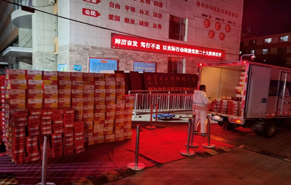 疫情突发,10月9日凌晨学院出现了一例初筛阳性,学院近1600名在校学生紧急实施宿舍封闭管理。一时间,在校学生及防疫一线工作人员的物资供给和保障困难重重。内大经管校友理事、校友班级负责人等主动联系学院,迅速响应,组织捐款、筹集防疫和生活保障物资。面临运输渠道困难,主动协调解决供应渠道问题,确保物资及时送达。特殊时期,有些校友也处于防疫一线或居家隔离状态,克服种种困难助力学院抗疫,充分彰显了责任和担当。当日,学院教职工也迅速发起捐助活动,短短三个小时完成近6万余元的捐款,全院教职工与学生为打赢这场战“疫”一起坚守。