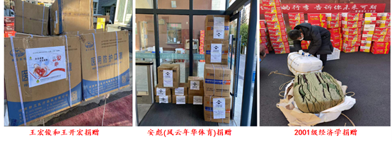 除了有计划的捐助采购之外,校友组织的捐赠活动有序进行。静默管理,急需物资运送成为了另一个难题。“运输不用操心,我们想办法解决”,“运输的事请放心,告诉我接收时间和联系人,其他我们来安排”。干脆利落,掷地有声,校友捐赠的物资陆陆续续送达。