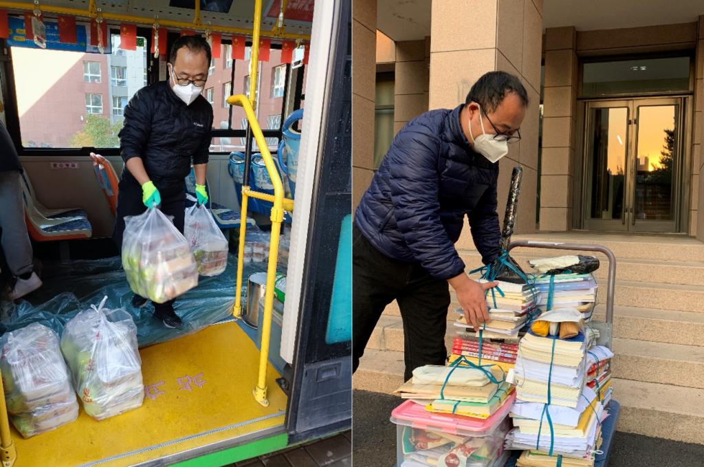从鄂尔多斯带队返校后,侯建昀又投身校内的抗疫大军,服从学校安排,加入北校区疫情防控专班,负责专项工作。同时,他还积极参与为东院学生送餐、学院物资、学习用书的搬运工作。