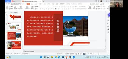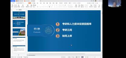 为帮助同学们更加深入地了解保研、考研相关事宜,更好地规划未来的学习生活,2022年10月24日19:30,学院举办了线上考研指导讲座。本次讲座特邀副院长、博士生导师薛继亮教授,学院特聘研究员、博士生导师杨琳老师进行线上指导。2018级工商管理专业何艳娇、2018级金融工程专业刘长扣、2018级会计学专业杨思雨、2018级会计学专业王皓、2018级金融学专业张艺佳、2018级经济学专业田宇、2018级财务管理专业翟昊睿七位嘉宾为同学们分享了自己的保研、考研的成功经验。