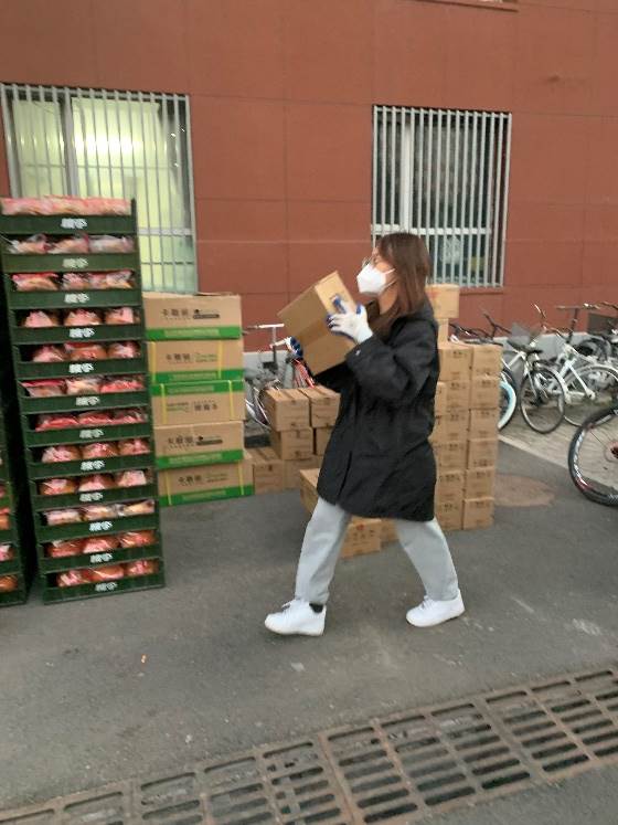 一回到学校,李安琪同志立即投身到最紧急的发放抗疫物资“搬运大军”,给封闭在校园内的学生生活纾困。从送餐到抗疫物资的清点及运送,李安琪老师化身“女汉子”,面对繁重的体力劳动,相比一线顶梁柱的男同志,她也不遑多让。整箱的方便面,男同志拿四箱,她拿三箱;沉重的一箱酒精,男同志搬起来都费劲儿,她想也不想,抱起来就走。一整天下来,谁也没听过李安琪同志叫苦叫累,只有她自己知道,到底有多累。