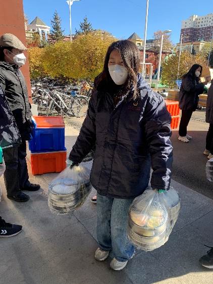 10月9日至27日,我院未出现核酸检测阳性,工作重点转移到学生健康日常监测和物资配送方面。物资储备方面,根据学生需求,杜凤莲院长组织人员采购了洗发水、香皂、肥皂、牙刷、牙膏、卫生纸等等,送至东校区。驻校人员及时按需求将物资发放到学生手中。