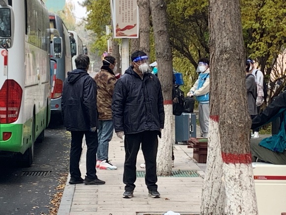 10月30日,副书记、副院长王锋正教授带领隔离转运的170余名学生前往巴彦淖尔市。开始组织学生返乡后,王锋正每天晚上要组织学生做核酸、登记返乡信息,再组织学生登车,基本没有休息的时间,白天还要一如既往地与属地沟通协调,还不能耽误讲课、开会、指导研究生。