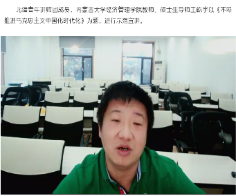 王乾宇进校后,积极投入各项工作,变身搬运工,送餐、运物资,时刻不停歇。在抗疫前线,他既是“抗疫战士”,也是“网络主播”,既当搬运工,又当好老师,用自己的奉献和努力践行着一个共产党员的责任与担当。王乾宇承担着繁重的教学任务。除了完成正常的教学任务,王乾宇注重加大对本科生的指导力度,夯实同学的马克思主义经济学理论基础。在讲授的硕士生《行为经济学》课程中,为了提升学生的科研基础能力,他要求每位同学写作一篇关于人类经济行为的调研报告,从报告的选题、问卷的设计,王乾宇都在空闲时间不间断与同学们讨论。作为导师,他心系学生,嘘寒问暖,叮咛嘱咐,用自己的关心为学生送去了深厚的温情。10月16日,党的二十大在北京胜利召开。作为北疆青年讲师团的一员,作为一个坚定的马克思主义者和马克思主义政治经济学青年学者,王乾宇一边积极抗疫,一边贯彻自治区党委、团委指示,努力学习党的二十大精神,挑灯备课,为做好党的二十大宣传工作精心准备。现已为学校多个学院进行了二十大精神宣讲,并为自治区团委举办的全区共青团系统学习宣传贯彻党的二十大精神宣讲培训班做了二十大精神的示范课宣讲。