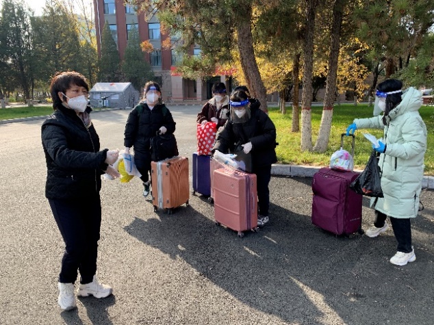 为更好地完成抗疫任务,按照学校统一安排,有更多的老师毅然离开温暖的家,逆行而上,进校投身抗“疫”大军。王乾宇10月 21日进校,李宜洺、王瑾、陈晨10月29日进校,杜凤莲院长11月1日进校,薛继亮副院长、钱贵霞、周冉、刘浩荣11月4日进校,张启锋、张雪薇11月6日进校,王丽11月7日进校,驻校人员不断补充、队伍持续壮大,各项工作有序开展。