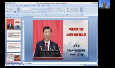 经济学研究生党支部书记恩和以《解读中国式现代化的本质要求和理论依据》为题,带领学员们学习了中国式现代化的本质要求、理论背景和理论依据、总的战略安排以及实现中国式现代化必须牢牢把握的准则。他强调学员们要牢记空谈误国、实干兴邦、坚定信心、同心同德、埋头苦干、奋勇前进的精神,为全面建设社会主义现代化国家、全面推进中华民族伟大复兴而团结奋斗。