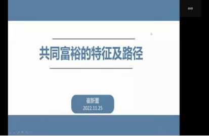 教工第一党支部书记崔新蕾以《共同富裕的特征与路径》为题,以共同富裕的发展历程为切入点,强调要正确认识和把握共同富裕的内涵和路径。