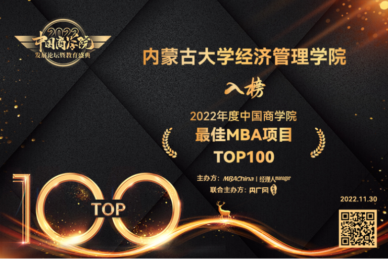 新葡萄官网amgMBA教育项目连续两年荣获中国商学院最佳MBA项目TOP100,充分肯定了我院MBA项目的教育成果。尤其近年来,内大MBA项目面向企业需求培养行业特色人才,秉承严谨、务实的教学理念,开设了企业所需的特色方向选修课程,全面提升学生综合素质和实战技能。以更加优秀的教学质量和丰硕的教学成果,提升了内大MBA的综合实力和影响力,为实现服务社会的使命做出了更大的贡献。