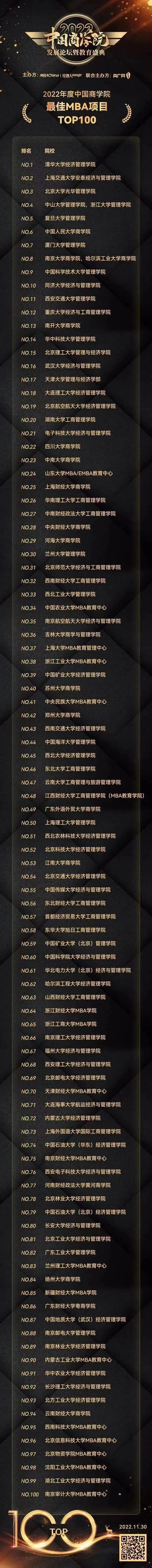 新葡萄官网amgMBA项目连续两年荣获中国商学院最佳MBA项目TOP100