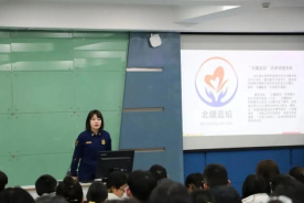讲座开始,“蓝姐姐”张晓冉向同学们介绍了“北疆蓝焰”志愿者服务队,并对全体学生发出邀请,希望广大学子在课余时间能够踊跃参加志愿活动,积累更多的消防技能。