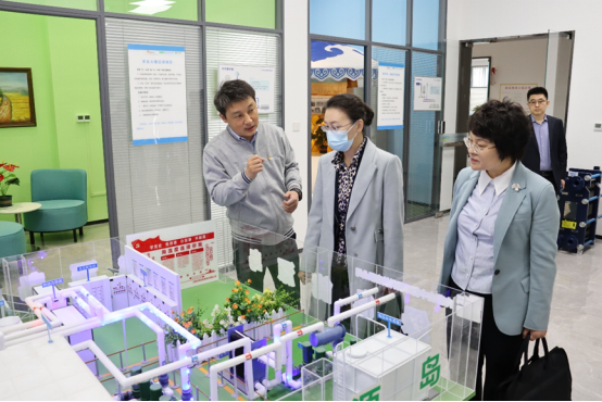 李宏宇书记一行参观了内蒙古环投环保技术有限公司展示中心,了解了公司发展历程、组织架构、专利技术和研发产品等。